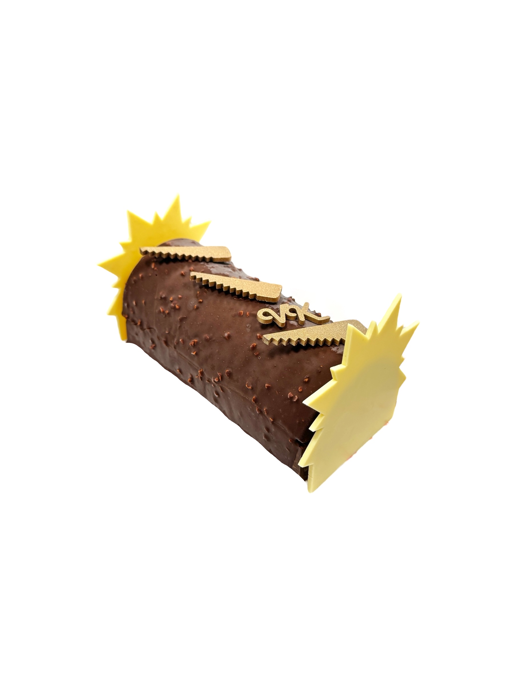 Notre bûche de Noël traditionnelle est un véritable classique des fêtes, alliant simplicité et gourmandise. Elle se compose :