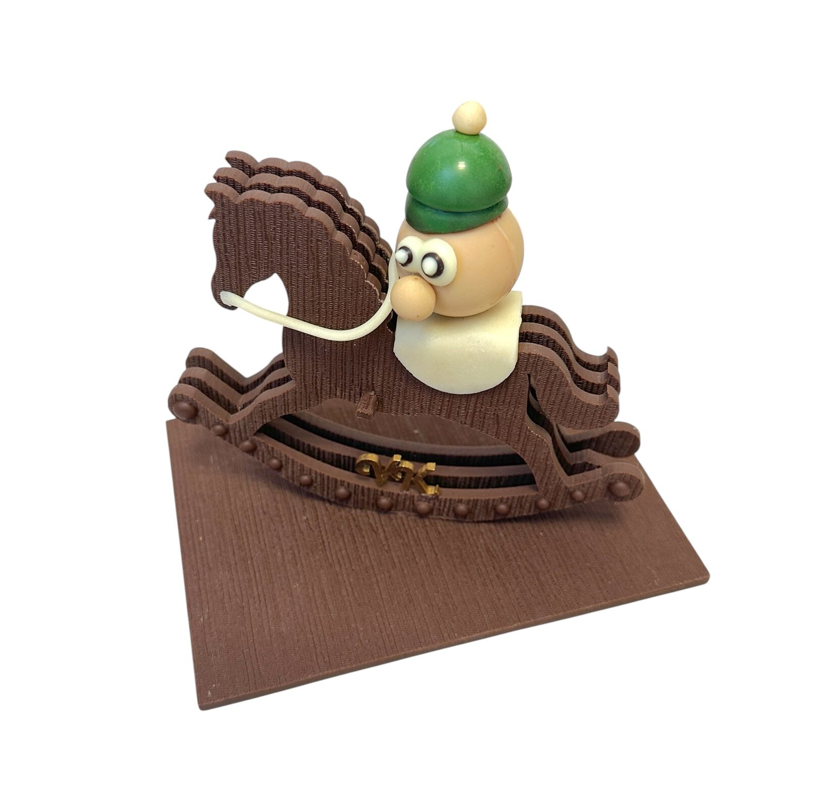 Plongez au cœur de la nostalgie avec notre cheval à bascule en chocolat lait 42 %, inspiré du charme intemporel des jouets d’antan. Ses courbes douces et son décor délicatement moulé rappellent ces chevaux en bois qui berçaient les rêves d’enfance. La douceur du chocolat lait 42 % sublime chaque détail et transforme ce symbole classique en une gourmandise élégante et réconfortante. À offrir ou à savourer, ce cheval à bascule chocolaté évoque la magie des Noëls d’autrefois, où chaque jouet avait une âme et chaque chocolat un souvenir.