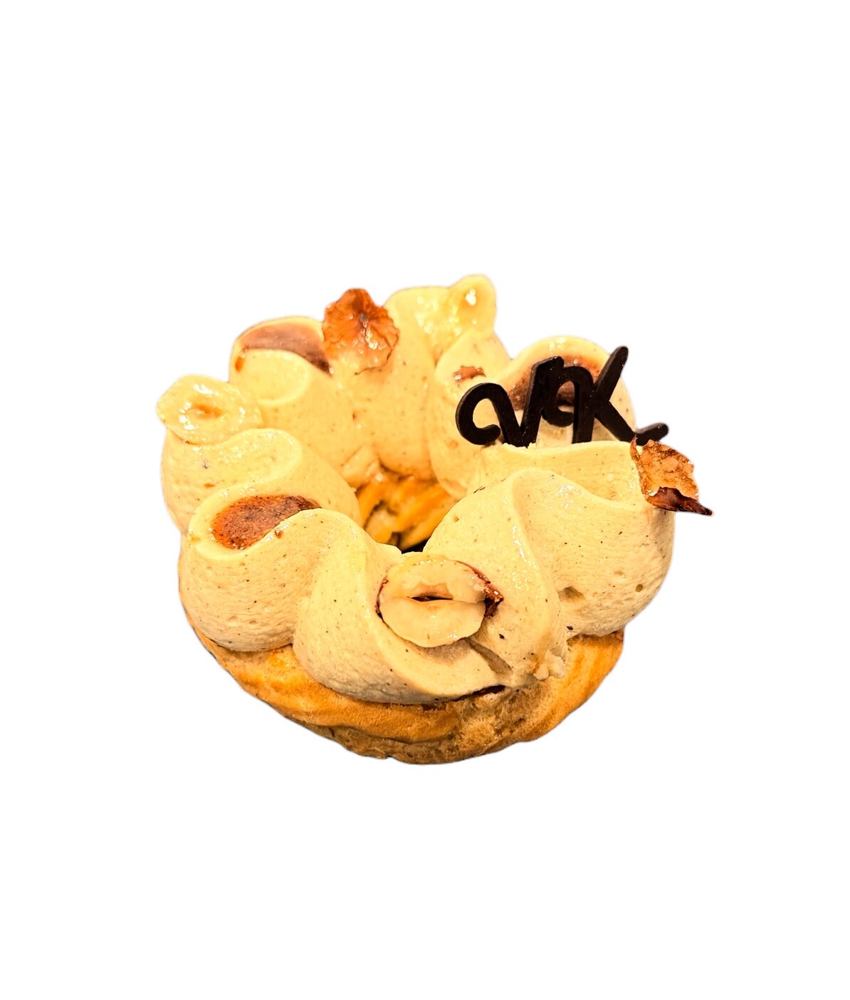 Un grand classique de la pâtisserie française revisité avec gourmandise. Un biscuit en pâte à choux délicatement doré, garni d’un praliné noisette coulant 100 % fait maison. Le tout est sublimé par une crème mousseline au praliné noisette, onctueuse et légère, qui révèle toute la richesse de la noisette. Un équilibre parfait entre croustillant, fondant et douceur, pour un dessert à la fois généreux et raffiné.