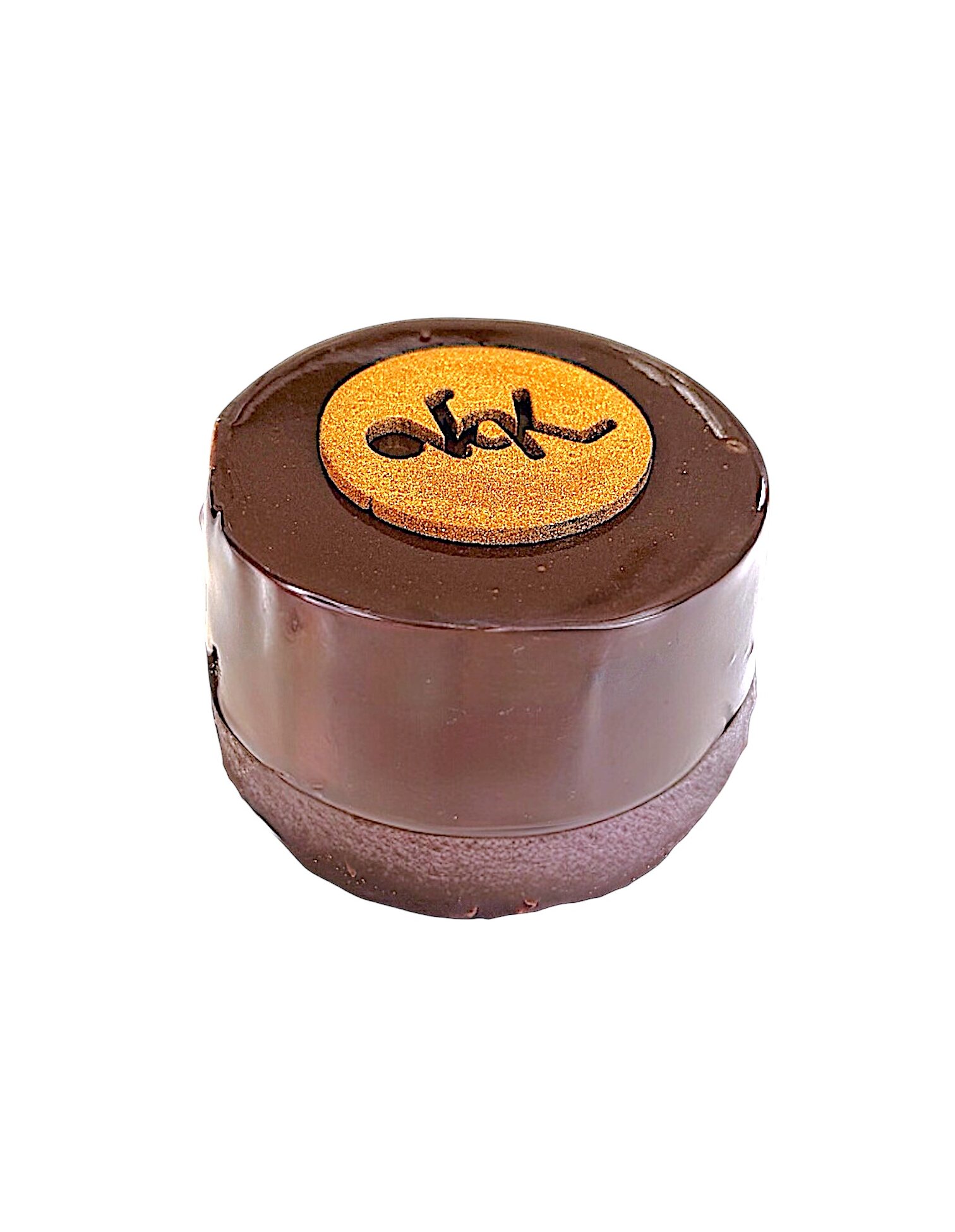 Découvrez notre Royal, une création intense et raffinée pour les amateurs de chocolat. Il associe une mousse légère au chocolat au lait 42% et au chocolat noir 72%, à un croustillant praliné amande maison irrésistible. Le tout repose sur un biscuit généreux aux amandes, pour un parfait équilibre entre fondant, croquant et richesse aromatique.