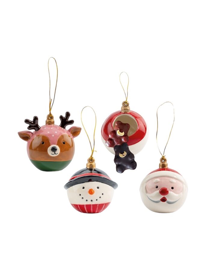 Apportez une touche de douceur à votre sapin de noël avec nos élégantes boules de Noël en céramique, délicatement garnie de deux oursons à la guimauve vanille, enrobés d’un chocolat lait 41 % fondant ou d’un chocolat noir 72 % intensément aromatique, ces petits oursons allient tendresse et gourmandise. Suspendue aux branches du sapin, cette boule devient un trésor à la fois décoratif et savoureux, prête à offrir ou à savourer pour prolonger la magie des fêtes.